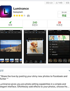 Subsplash1 Subsplash의 Luminance($1.09/free) Subsplash의 Luminance https://appsto.re/kr/h5RBA.i Luminance By Subsplash View More by This Developer Open iTunes to buy and download apps. Description **Share the love by posting your shiny new photos to Facebook and Twitter ** Luminance gives you pro photo editing capabilities in a simple and elegant interface. Effortlessly add effects to your photos, choose from many built-in pre.. 2016. 3. 31. 이전 1 다음